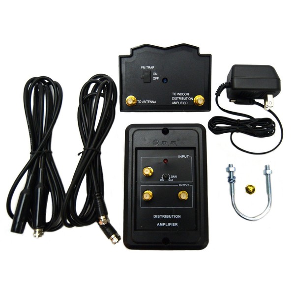- Gold-plated connectors help improve signal and reduce interference. Includes 75 ohm terminator, AC adapter, two 6" coax cables and U-bolt