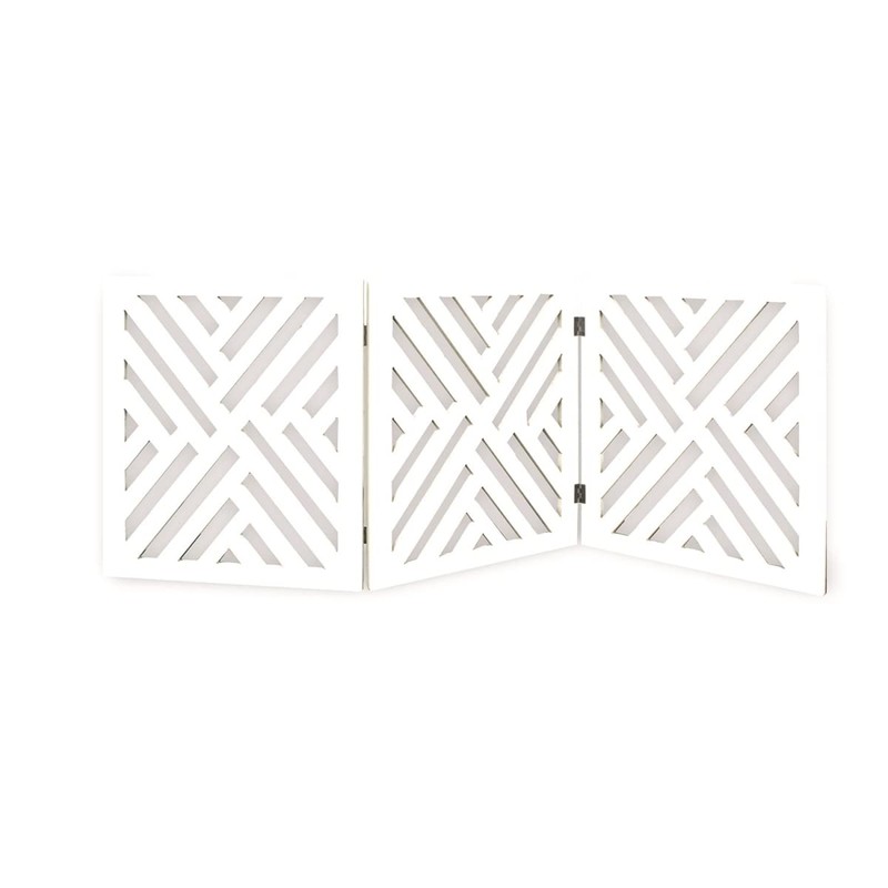 Indoor/Outdoor Solid Wood Lattice Freestanding Foldable Adjustable 3-Section Pet Gate