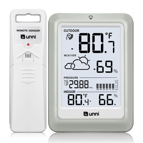 Wireless Weather Stations, with 330ft Range Sensor and Adjustable Backlight Inside Outside Monitor (White)