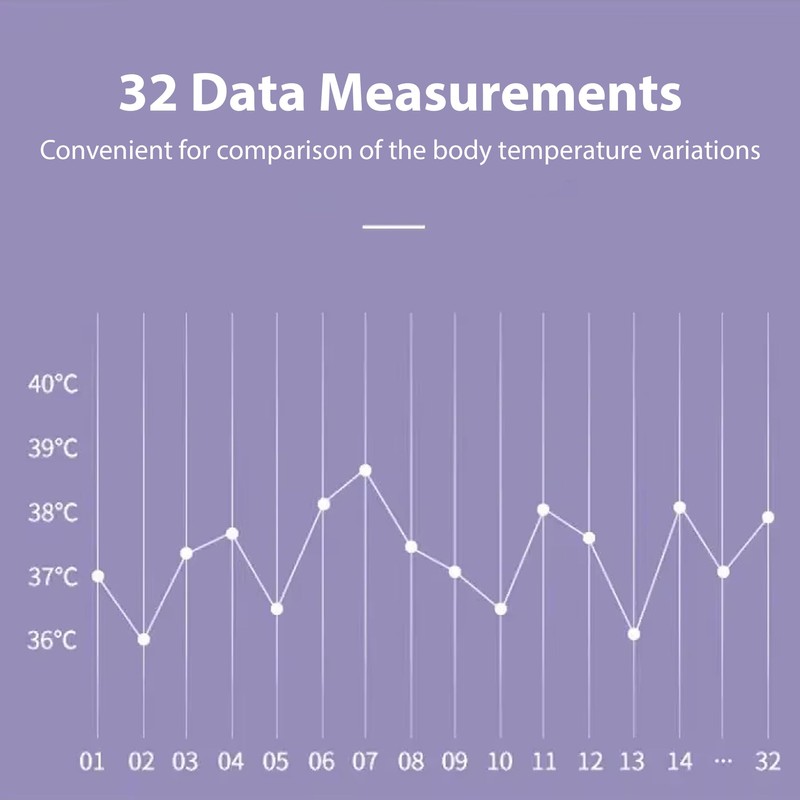 Track Your Temperature – The digital thermometer allows you to capture up to 32 data measurements providing a convenient comparison of the body temperature variations.
