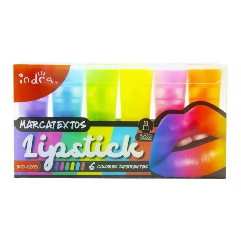 Coleccion 6 Marcatextos Lipstick Punta Cincel Indra Creative