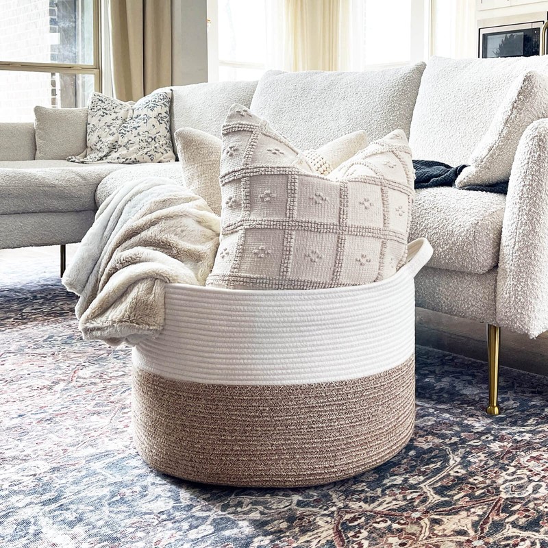 - Durability handles design, foldable, easy to move and take away, awesome practical cotton large storage baskets. Soft yet sturdy enough to stand up on their own