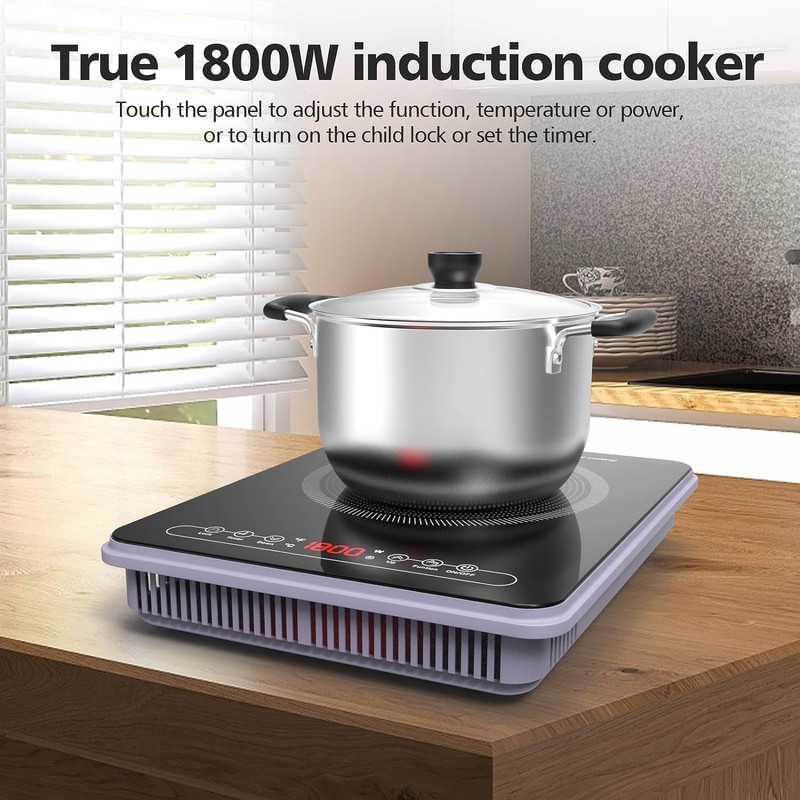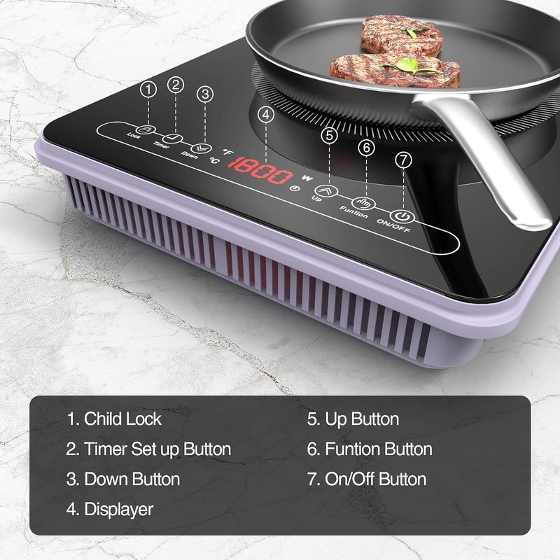 • 【Distinctive Appearance】Our advanced induction cooktop 1800W with a sleek design and user-friendly interface. With just the push of a button, you can turn on the stove and enter standby mode. The digital display will indicate that it's on and ready for use. And the stove comes in Morandi purple, a bright color that adds a splash of color to the kitchen.