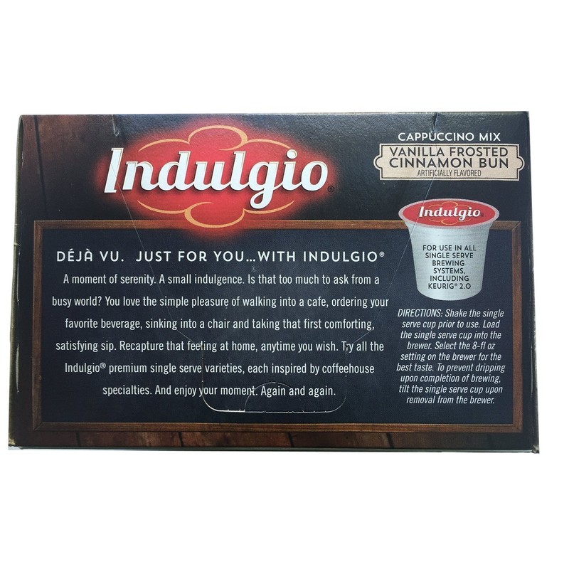 Indulgio Vanilla Frosted Cinnamon Bun Cappuccino, 12-Count Single Serve Brew Cups