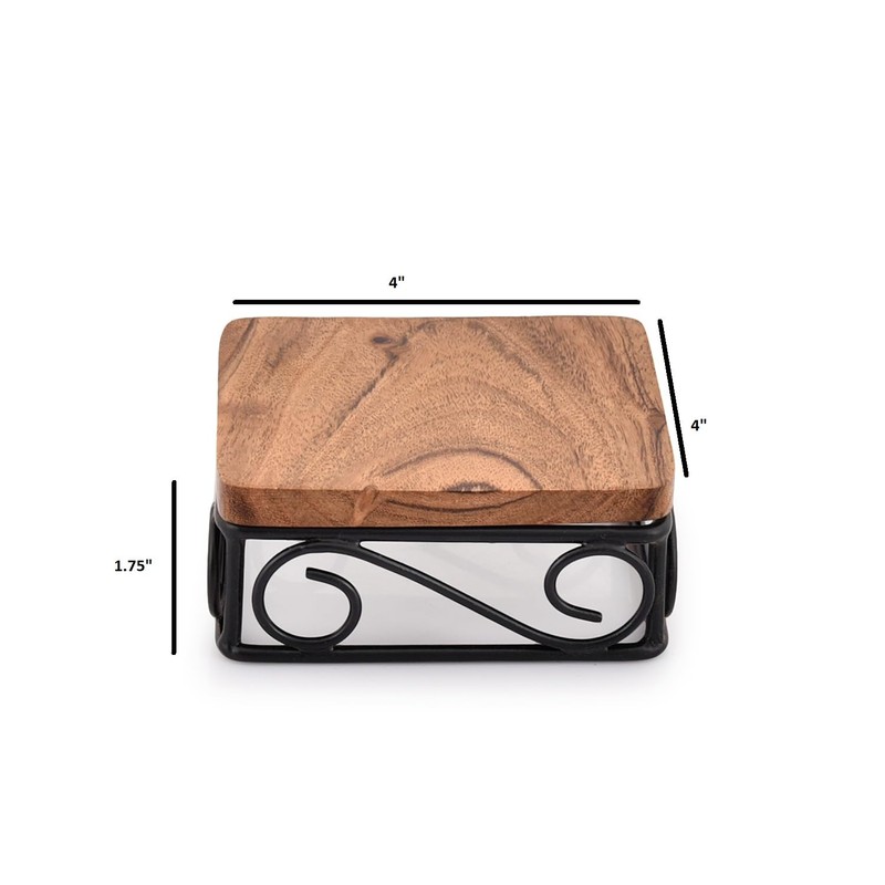 Indus Lifespace Riser Tabletop Square Dessert Stand Risers with Rustic Brown Wood Top Shelf and Metal Wire Base, Set of 2 ( 10.16cm x 10.16cm x 4.44cm)