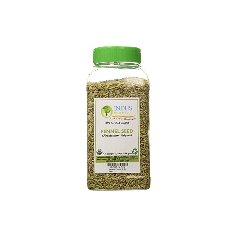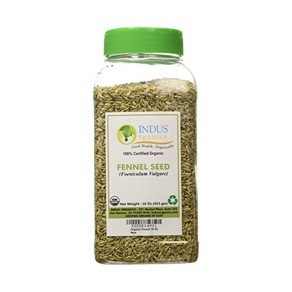Indus Organics Fennel Seeds, 1 Lb Jar, Premium Quality, High Purity, Freshly Packed