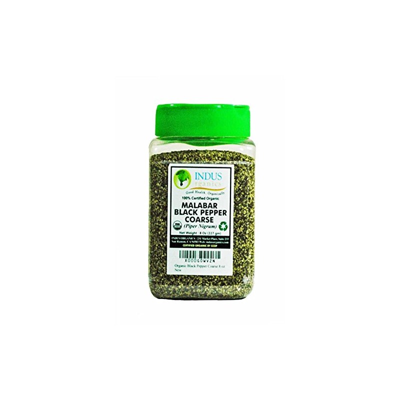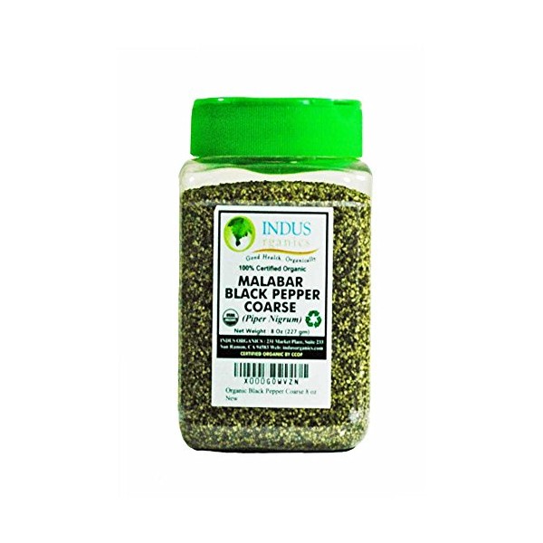 Indus Organics Malabar Black Pepper Coarse, 8 Oz Jar, Premium Grade, High Purity, Freshly Packed