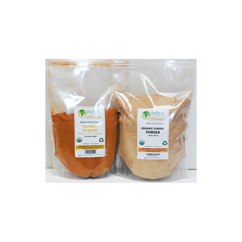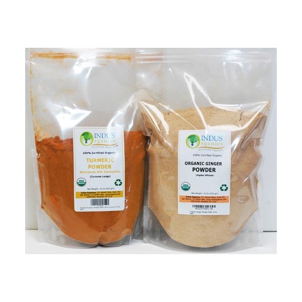 Indus Organics Turmeric (6% Curcumin) & Ginger Powder, Combo Pack, 1 Lb Each, Premium Grade, High Purity, Freshly Packed