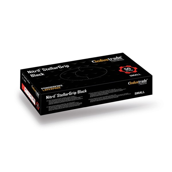 Industrade by Meditrade NITRIL StellarGrip Black Nitrile Industrial Gloves - Diamond Texture for Enhanced Grip - Powder & Latex Free Disposable Gloves - 6.5g Thickness - Small - 50pcs