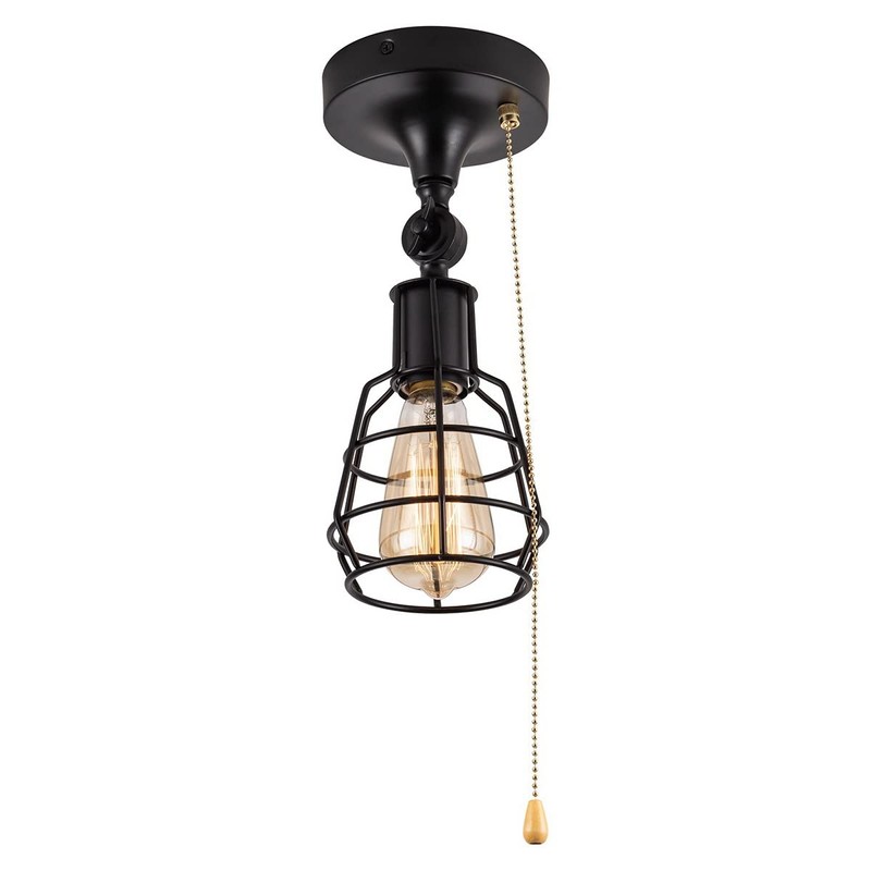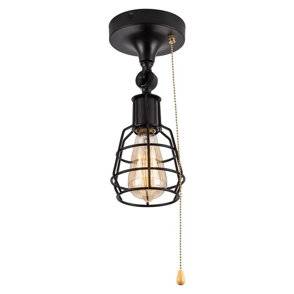 Industrial Farmhouse Close to Ceiling Light with Pull Chain 1 Light Black Semi Flush Mount Ceiling Light Adjustable Metal Cage Directional Wall Sconce Wall Lamp with Pull String for Kitchen Laundry