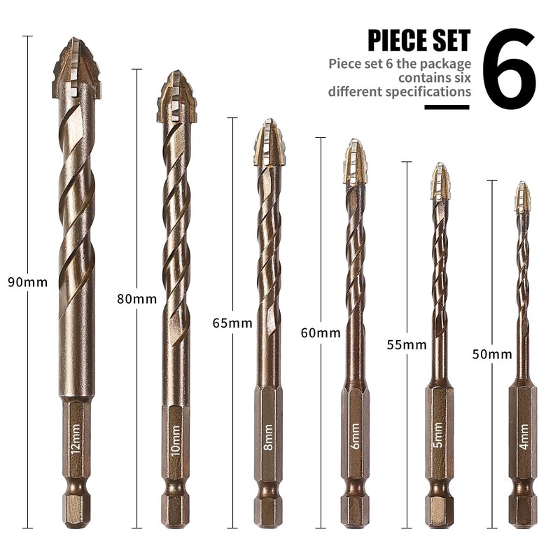 - UNIQUE SERRATED DESIGN: This upgraded masonry drill bit set includes 6 pieces of different sizes; (4mm) 5/32 inch X1, (5mm) 3/16 inch X1, (6mm) 1/4 inch X1, (8mm) 5/16 inch X1, (10mm) 3/8 inch X1, (12mm) 1/2 inch X1,It has more than three times the mass of a normal drill bit.