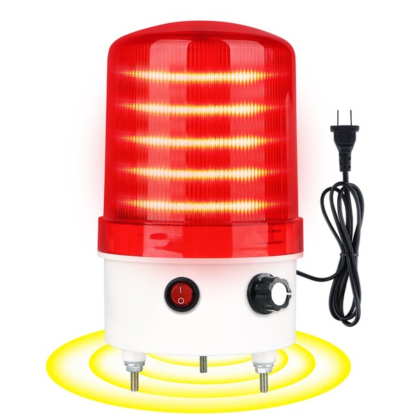 Industrial LED Rotating Warning Light, AC110V Red Strobe Light for Public Emergency Alarms, Indoor/Outdoor Safety Siren with Volume Adjustment/Plug and Buzzer