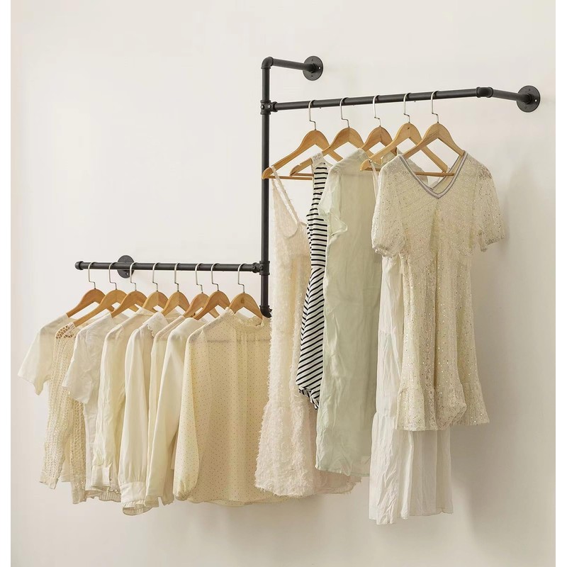 - 4. Space-Saving Clothing Hanging Bar: This retro Open Wardrobe clothes rack can hold many clothes and keeps your garments and accessories always organized and tidy, and don't need to worry about the weight. Wall Wardrobe clothes rack is easy to mount on the wall and floor. This wall pipe hanging clothes rack can save your lots of floor space and make your home organized..