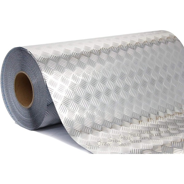 Industrial Utility Diamond Plate Metallic Chrome Finish Vinyl Wrap Sheet Roll Adhesive Roll (Silver 17.8 inches x 50ft)