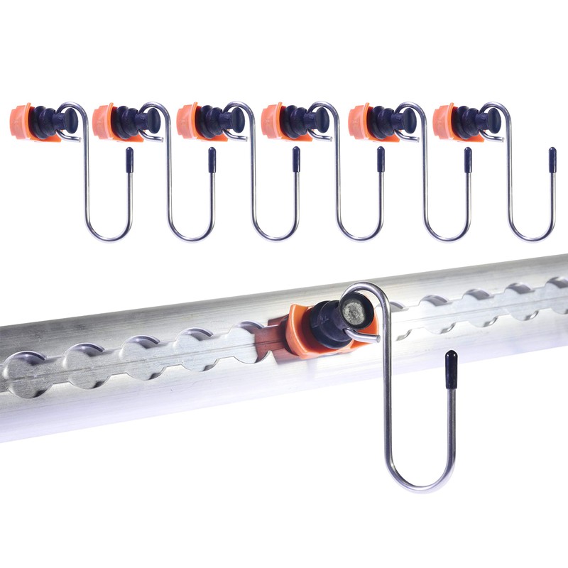 - Pack of 6 hooks for lashing rails with fitting airline rail. Now you can finally put things in order. For hanging items up to 50 kg. E.g. power cables, clothes, bags, and much more. Also ideal for organising your hobby area