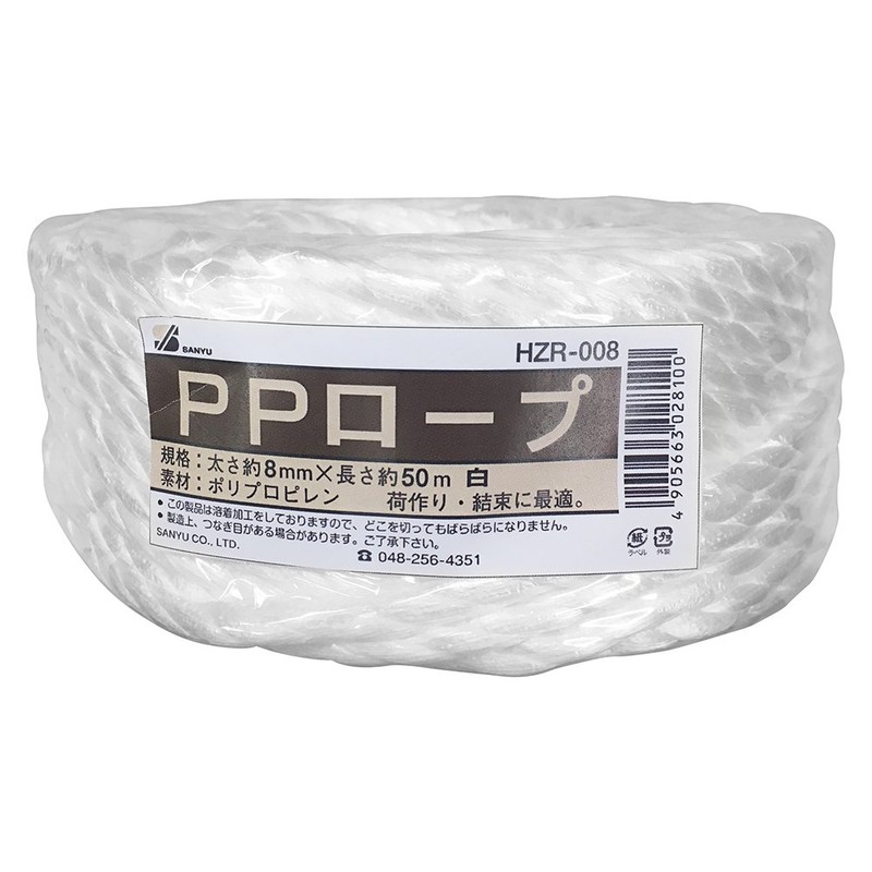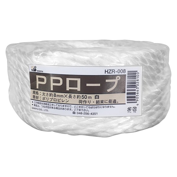 三友 Industry PP Rope Thickness Approx. 8 mm X Length Approximately/50 m White HZR – 008