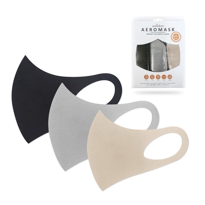 Indy Aero Silver Functional Anti-bacterial Mask 3-piece Set, Droplet Blocking, Washable, Multi-purpose Mask