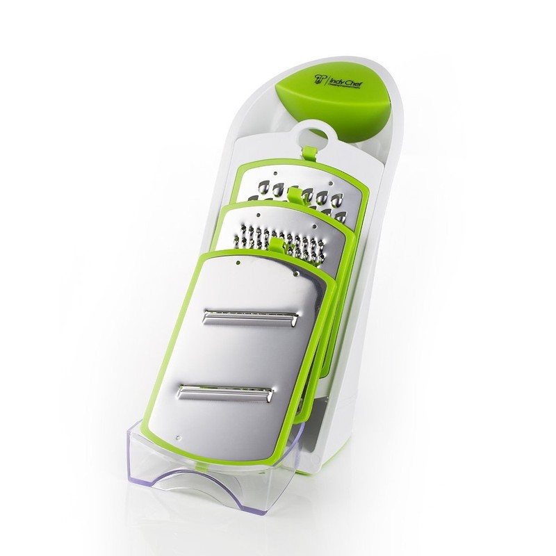 Indy Chef Cheese Grater with Container and 3 Interchangeable Stainless Steel Blades