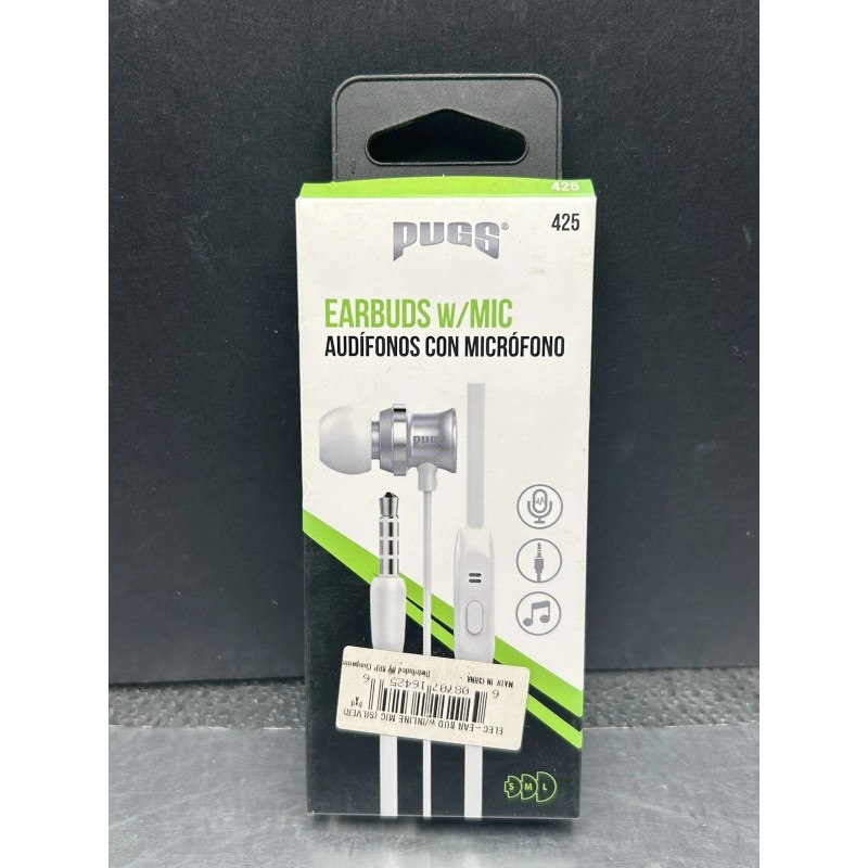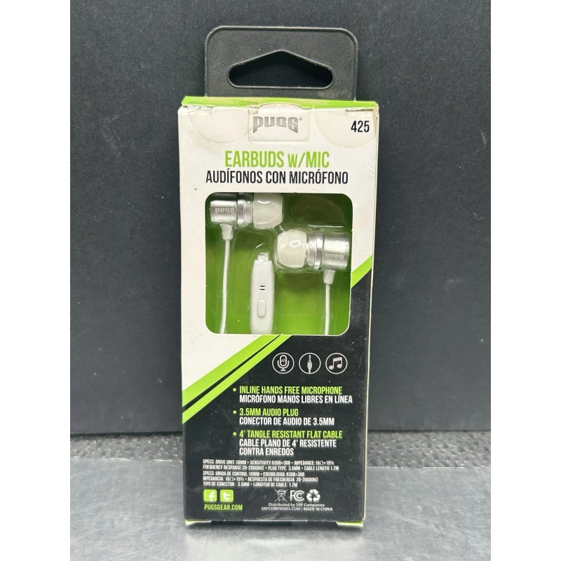 New Earbuds With Microphone 3.5mm Audio Wired 4 Ft Plug White Silver Pugg NIB. Condition is New. Shipped with USPS Ground Advantage.
