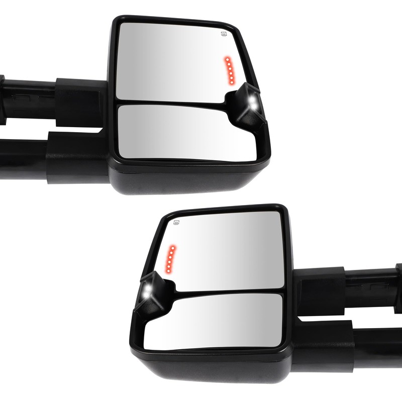 - Improve Visibility and Appearance:Come withA Pair(Left Right Side Tow Mirrors) Towing Mirror designed to look and function like the original ones, can replace the old or damaged tow mirror for upgrade appearance of vehicle with a visually striking presence, and help to improve the brightness, allowing you see the road clearly at night or in extreme weather