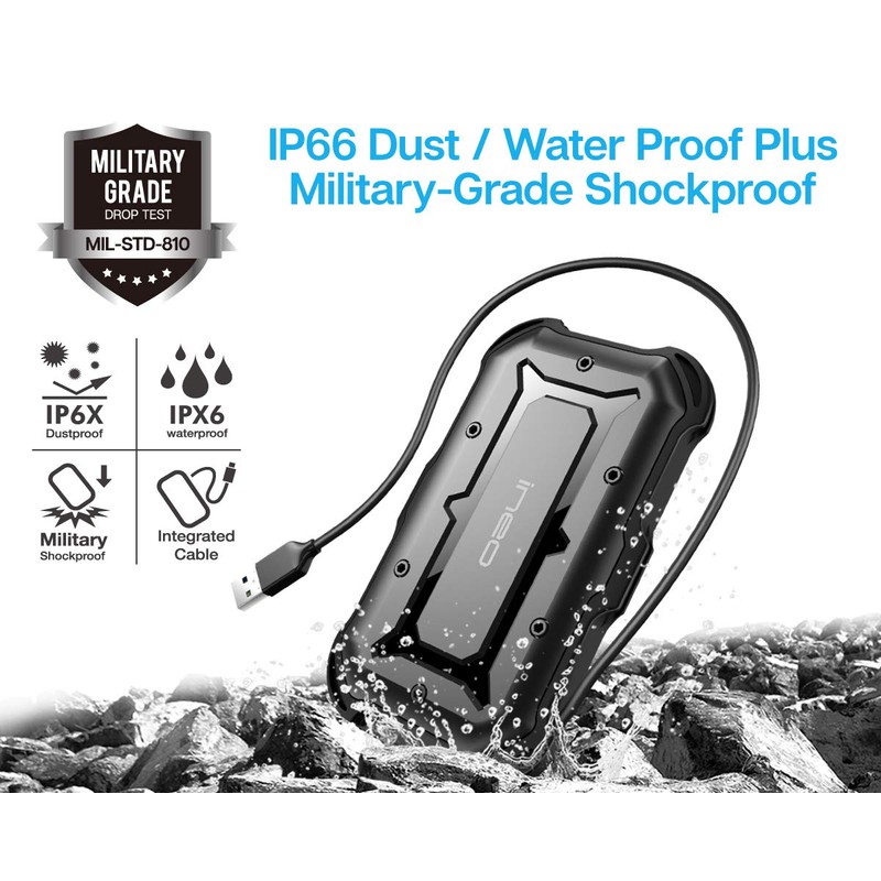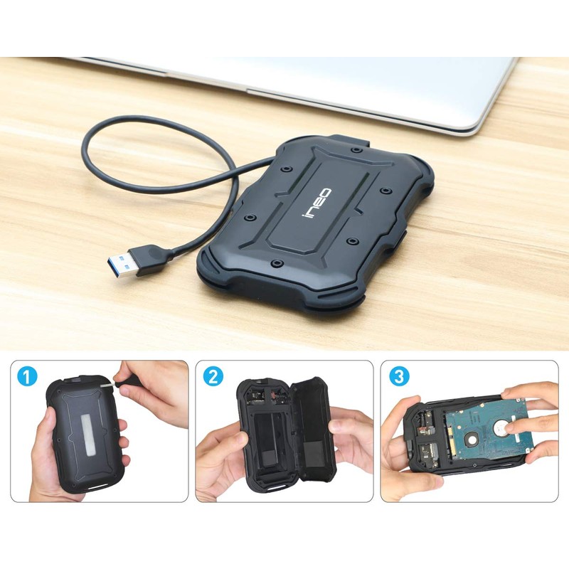 ineo 2.5 Pulgadas USB 3.0 Tipo A, Resistente al Agua y a Prueba de Golpes IP66 Carcasa de Disco Duro Externo para 2.5 Pulgadas 9.5 mm y 7 mm SATA HDD SSD [T2566-II]