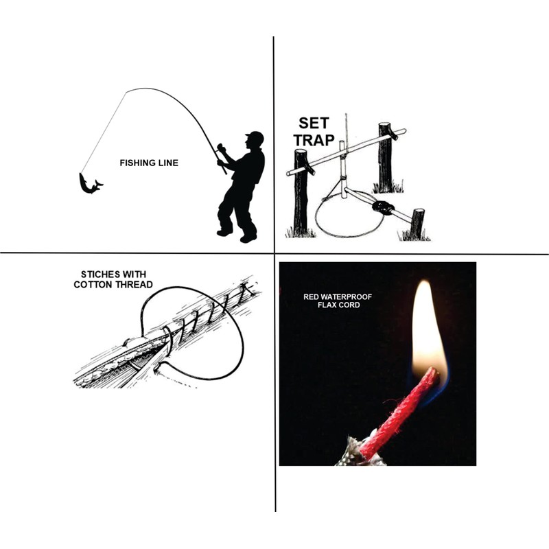 - Color: Black Size: 100 Ft Material: Polyester, Nylon, Polypropylene, Cotton Components: 7 Individual Triple Ply Braided Strands 1 Red Flax Fire Tinder 1 PE Fishing Line (40lbs) 1 Cotton Tread