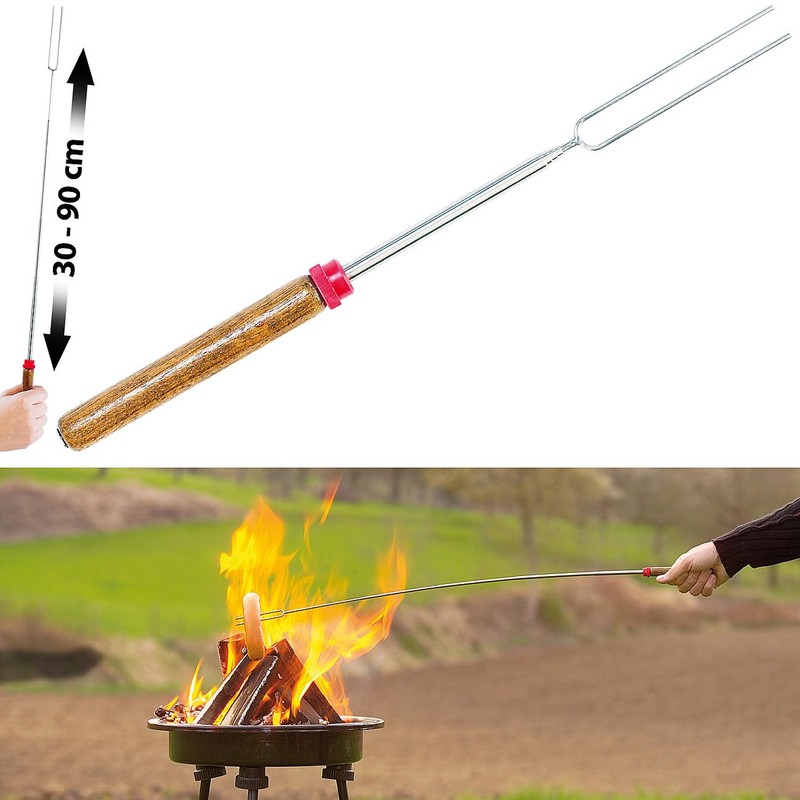 - Length: approx. 30cm to 90cm Extendable grill rod – also relevant or suitable for: extendable barbecue stick, barbecue tongs, on the go, picnic, camping, barbecue, hiking, barbecue, BBQ