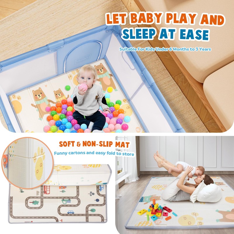 - Mom & Dad's Best Baby Helper - Parents can free up their hands to do the own stuff, like cleaning, reading, cooking, watching TV. Then kids or toddler can play with friends or alone in the playpen. You check your kids via the mesh cover. Great for both kids and parents to relax or enjoy their time. Please make sure the playpen keep away from the dangerous or parents attendance.