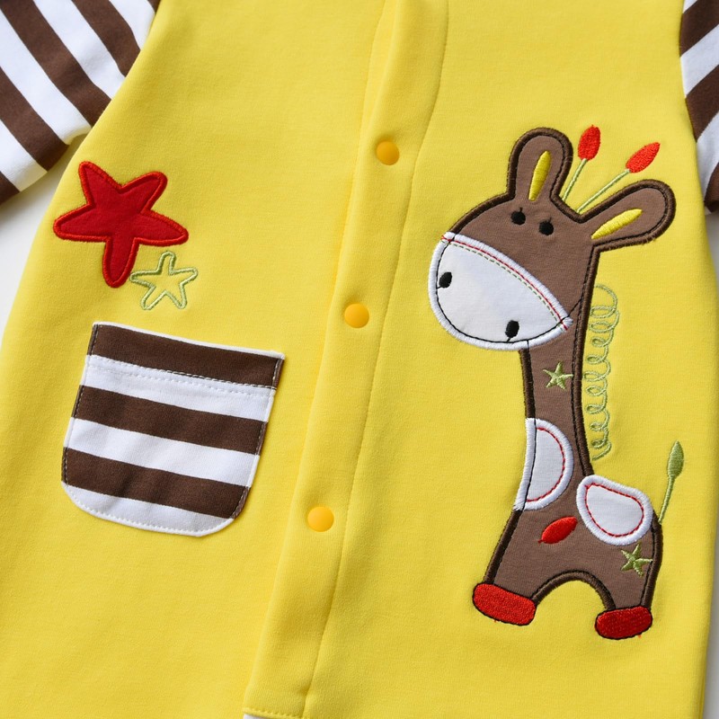 Infant Newborn Baby Boy Rompers Giraffe Pattern Button Jumpsuit Clothes Fall Winter Outfit Yellow 3-6 Months