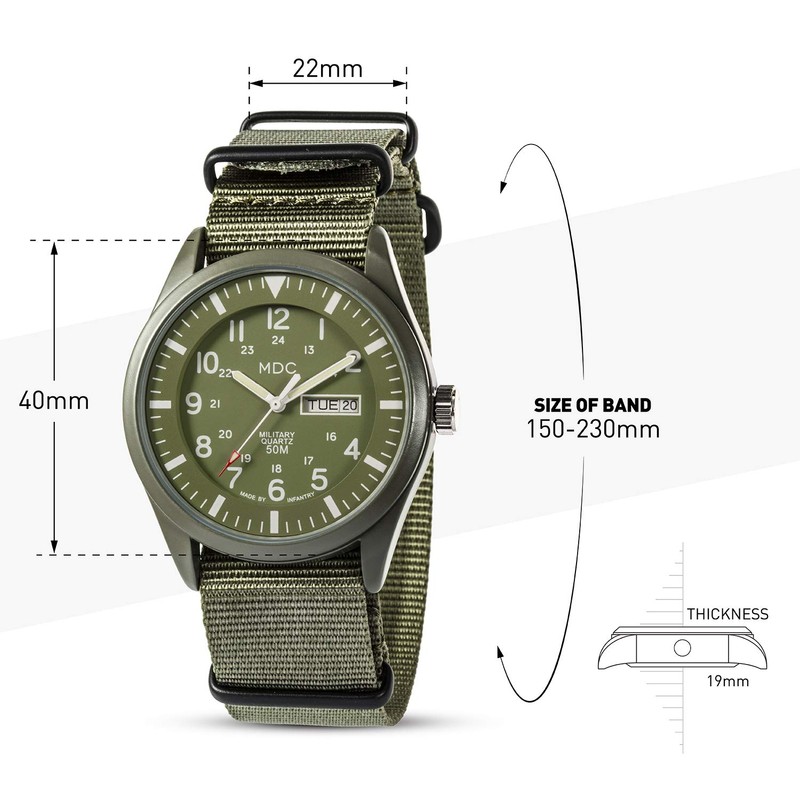 Infantry Military Watches for Men Analog Wrist Watch, Tactical Waterproof Outdoor Sport Mens Quartz Wristwatch, Date Day Work Field Army Green w/Nylon Band by MDC