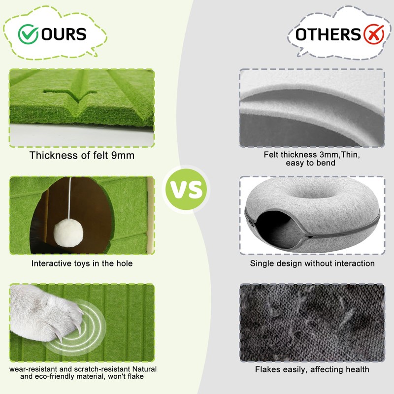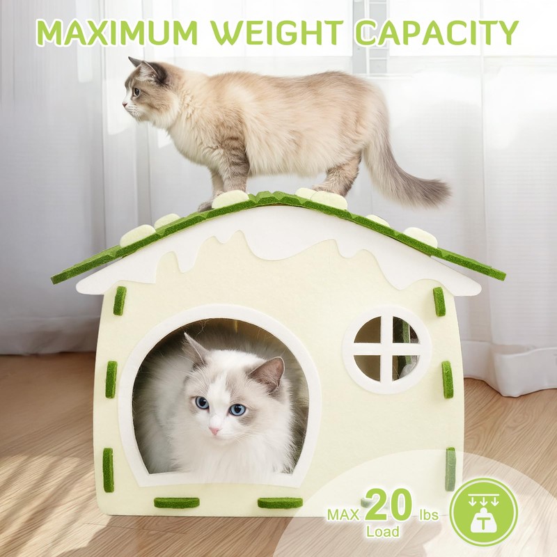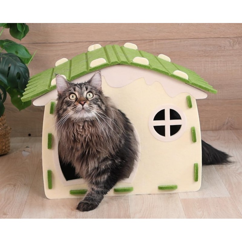 • Built Tough for Endless Adventures: Cat house bed's reinforced insert seams and a sturdy frame withstand even the most energetic jumps and plays,will not deform in long-term use.The felt adsorbs cat hair, no worry about cat hair flying around. When cleaning cat hair, disassemble each part of the felt cat house hideaway, support vacuum cleaner or sticky hair cleaner, keep hygiene and save time and labor