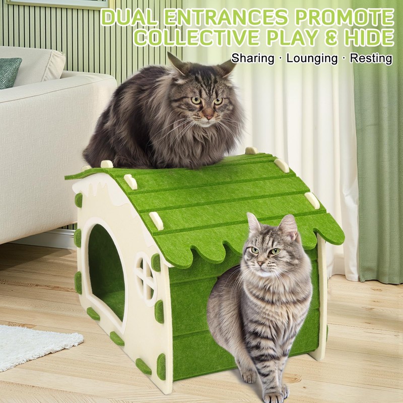 Cat House for Indoor Cats, Cat Bed Cave for Multiple & Large Cats, Scratch Resistant Peekaboo Cat Caves, Foldable Cat Tunnel Enclosed Bed