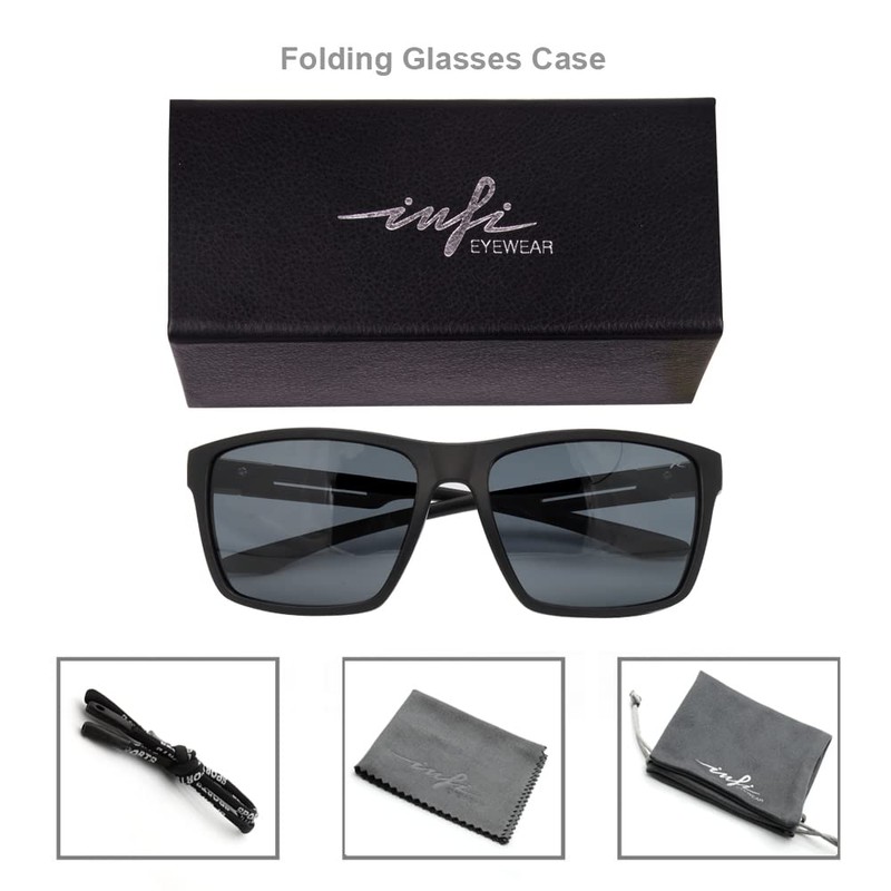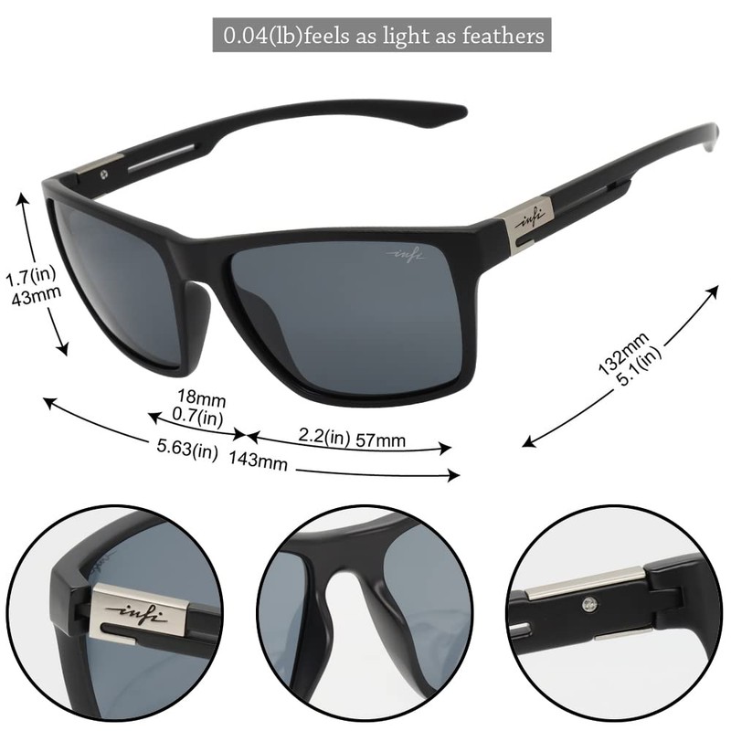 INFI Fishing Polarized Sunglasses for Men Driving Running Golf Sports Glasses Square UV Protection Designer Style Unisex (Matte Black/Smoke Lens)