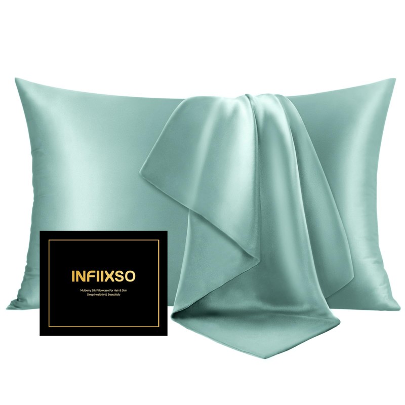 INFIIXSO Mulberry Silk Pillowcase for Hair and Skin, Silk Pillow Cases Queen Size Set of 2 with Hidden Zipper 20"x30", Ultra Smooth and Soft Cooling Pillow Cases for Hot Sleepers(ICY Morn, 2 Pack)