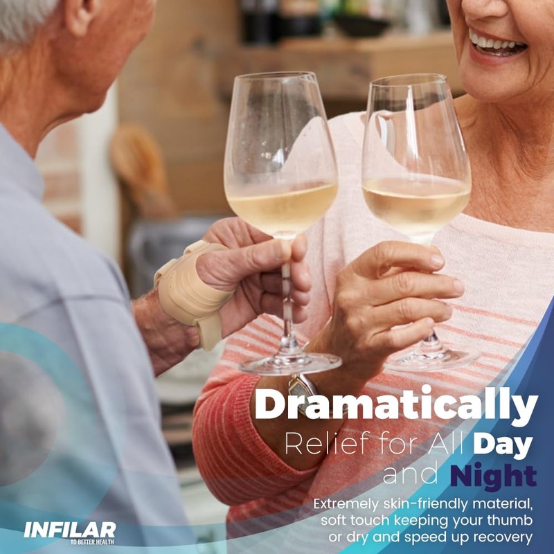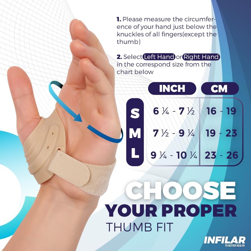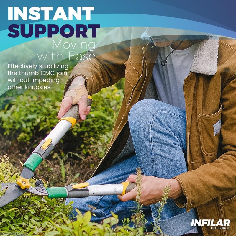 - 👍 Say goodbye to joint discomfort with our INFILAR thumb brace — This CMC thumb brace provides immediate and lasting relief from thumb discomfort, ligament instability, tendonitis, and sprains. It gives you the support and stability you need to prevent and treat discomfort or injury.