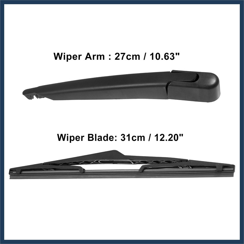 - Beneficial: [Size]: Wiper Blade Size: 31x1.5x3.5cm / 12.20"x0.59"x1.38"(L*W*H), Wiper Arm Size: 27x2.5x2.5cm / 10.63"x0.98"x0.98“(L*W*H)