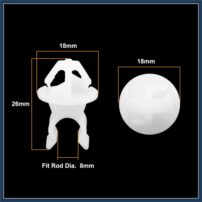 - Beneficial: THE SAME SIZE AND SHAPE AS - Head Diameter(max.): 18mm / 0.71"; Stem Length: 8mm / 0.31"; Fit Hole Size: 14 x 11mm/ 0.55" x 0.43"(L*W); Fit Rod Dia.: 8mm / 0.31"; Total Length: 26mm/ 1.02".