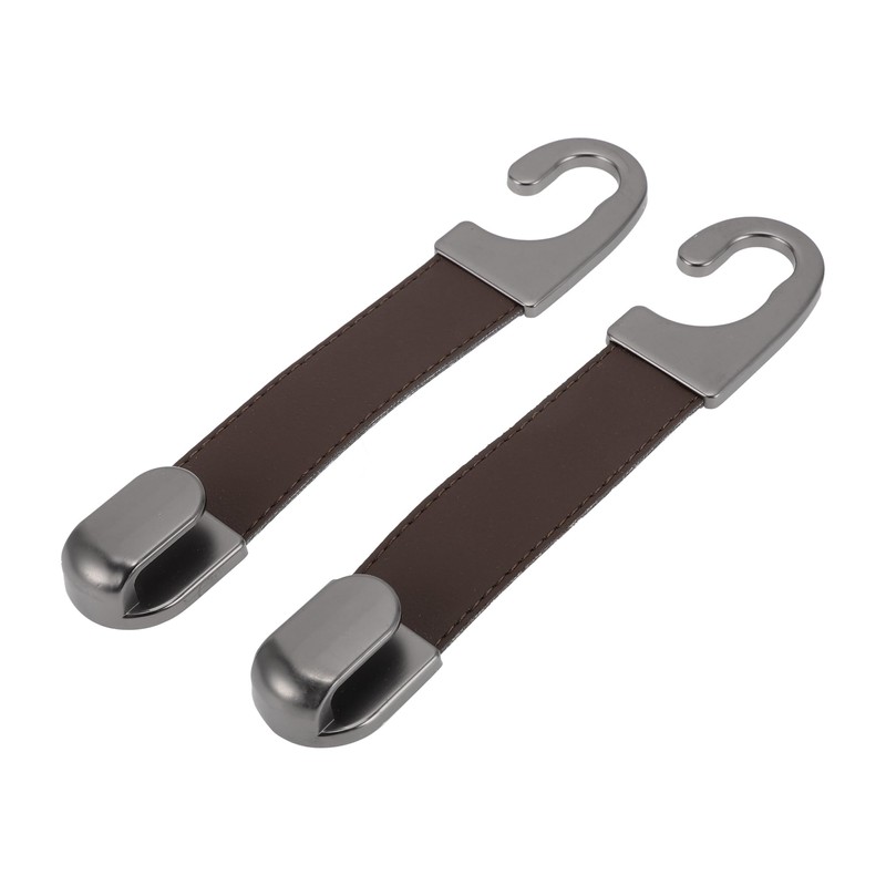INFINAUTO Car Seat Headrest Hook Interior Accessories for Most Car, SUV, Truck Car Seat Back Organizer Hooks Faux Leather Metal Brown 6.69"x1.18"