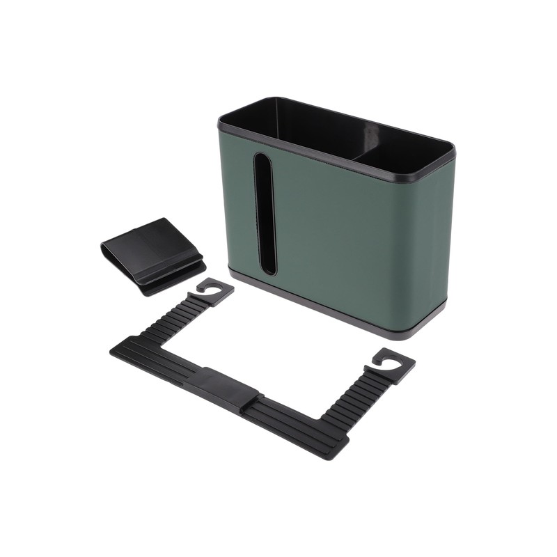 INFINAUTO Car Trash Can Front Rear Seats 7.1" Length 2.8" Width 5.5" Height Auto Trash Bin Faux Leather ABS Green Hanging