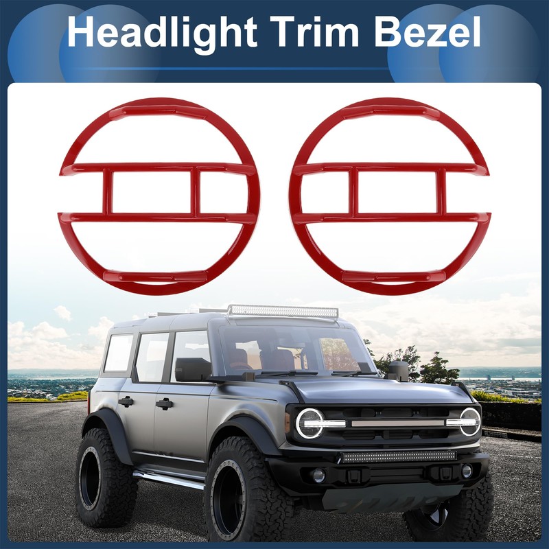 INFINAUTO Headlight Trim Bezel Headlamp Bezel Headlight Cover Decor for Ford Bronco 2021-2024 Red ABS 1 Pair Front Left,Front Right Car