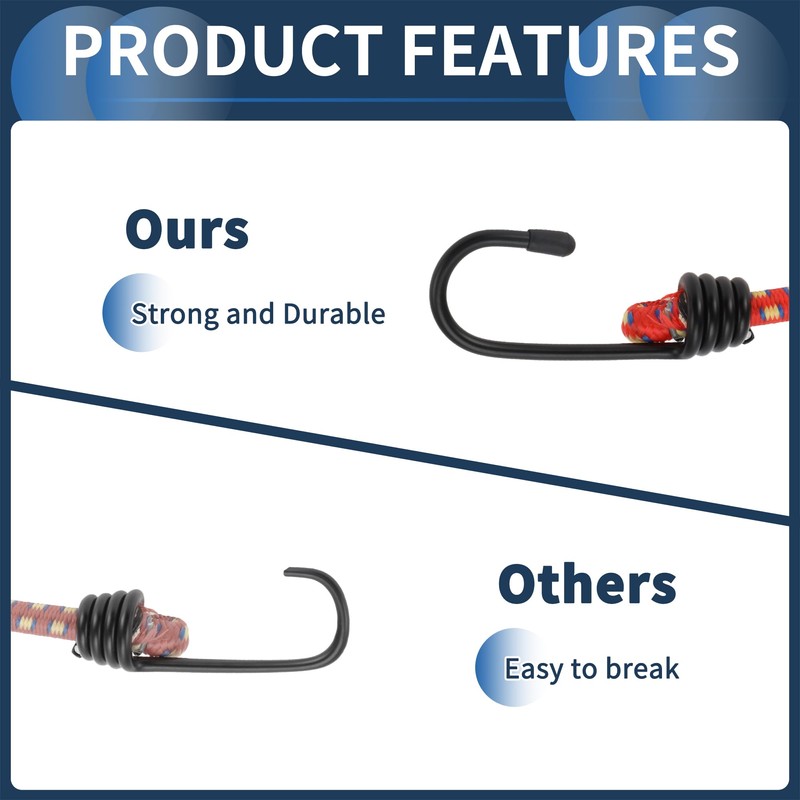 - About This Products: Made of durable material to ensure long-lasting performance.Long bungee cords with hooks feature a stronger carrying capacity and can meet your various higher requirements.