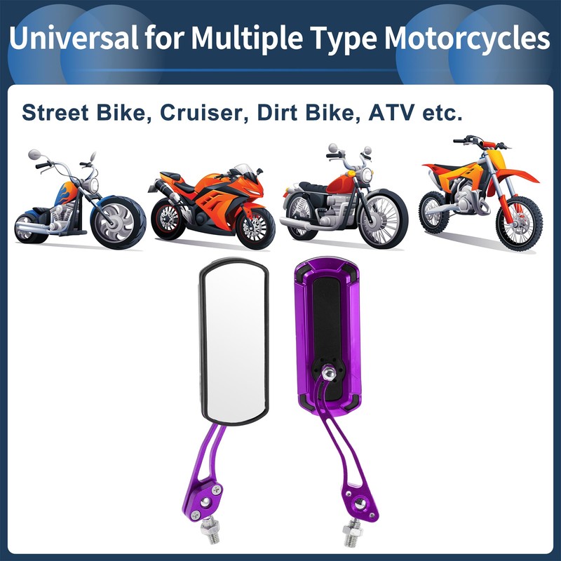 INFINAUTO Motorcycle Rear View Mirrors Bar End Side Mirrors Mount Aluminum Alloy Plastic Purple Adjustable M8/M10 Square Shape