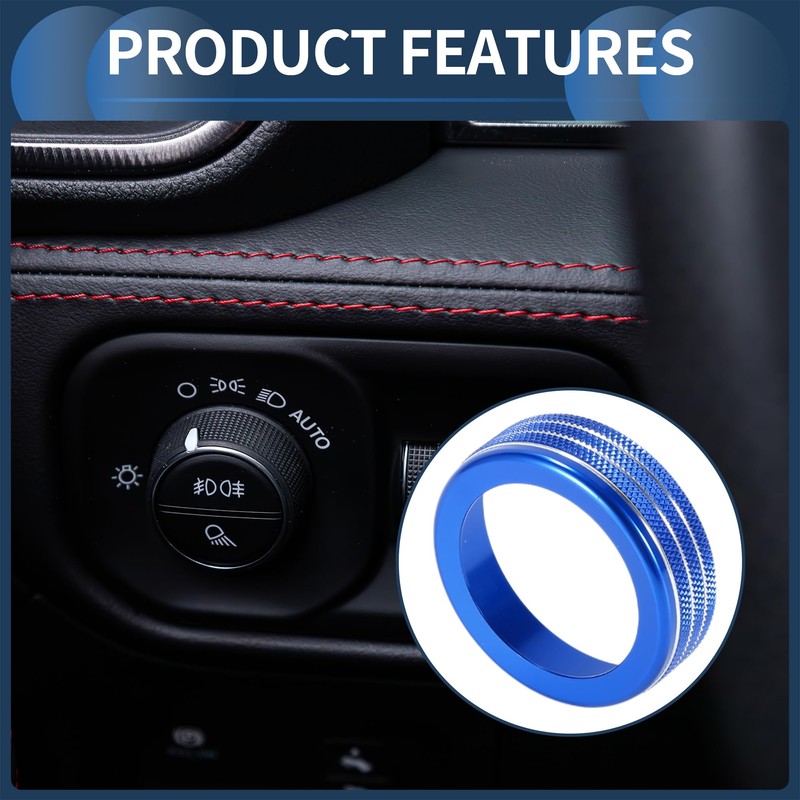 INFINAUTO Scheinwerfer Nebelscheinwerfer Steuerungsschalterknopfabdeckungsring, Innenverkleidung für Dodg für RAM 2018-2022 Blau, 1 Stück.