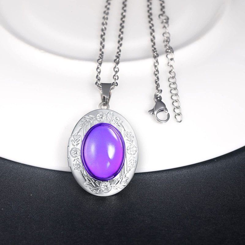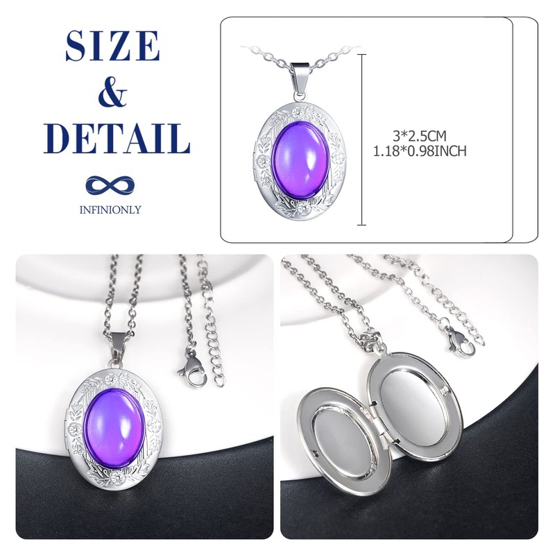 INFINIONLY Elegant Oval Locket Necklace Pendants, Stainless Steel Photos Necklaces for Women and Girl, Creative Jewellery, Pendant's Colour Changes with Temperature