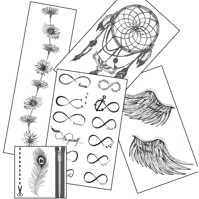 Infinite Dreams Pack of 10 temporary tattoos of 5 designs to include dream catcher, daisy, feather and infinity symbols