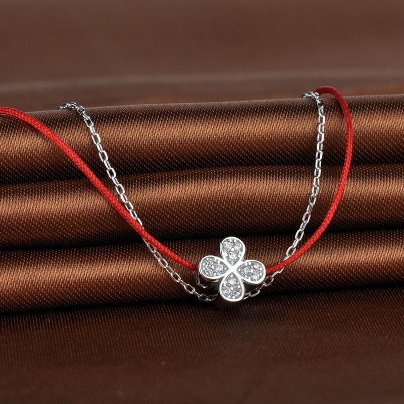 Infinite U Four-leaf Clover Womens Charm Bracelet 925 Sterling Silver Cubic Zirconia Red Rope Adjustable Link Chain Extension, Silver