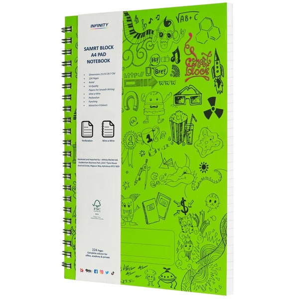 Infinity A4 Lined Wirebound Notebook Spiral Journal Notebook (Pack of 1, Green)
