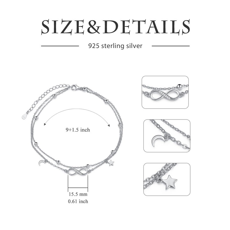 Infinity Anklet For Women 925 Sterling Silver Double Chain Love Ankle Jewelry Bracelets for Her Dainty Moon And Star Ankle Bracelet