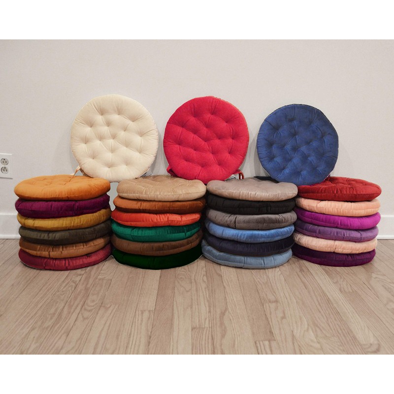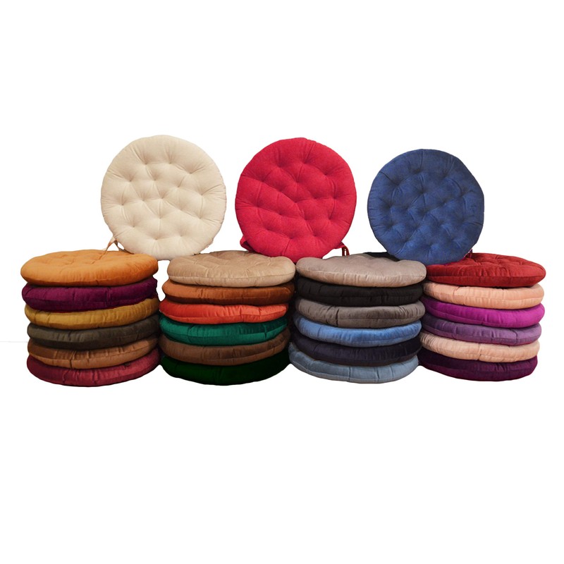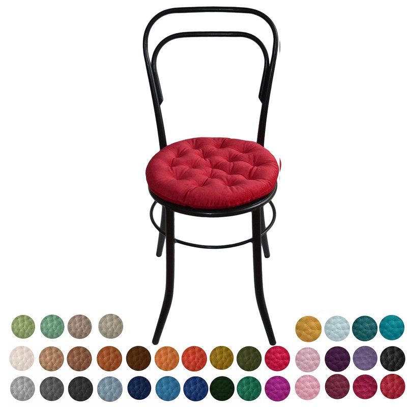 - INCLUDED Two Round Reversible Chair Pad/Cushions. Medium 2-inch thickness, not too fat, not too thin. Size 15 inch Diameter + 2 inch thick. These chair pads come in a variety of colors to match any home décor. PERFECT for kitchen, dining room, barstools, breakfast nook, office chair or any indoor seat that needs extra padding. PLEASE MEASURE YOUR CHAIRS BEFORE ORDERING.
