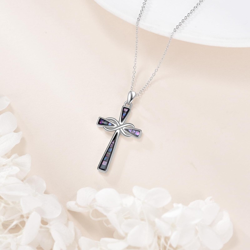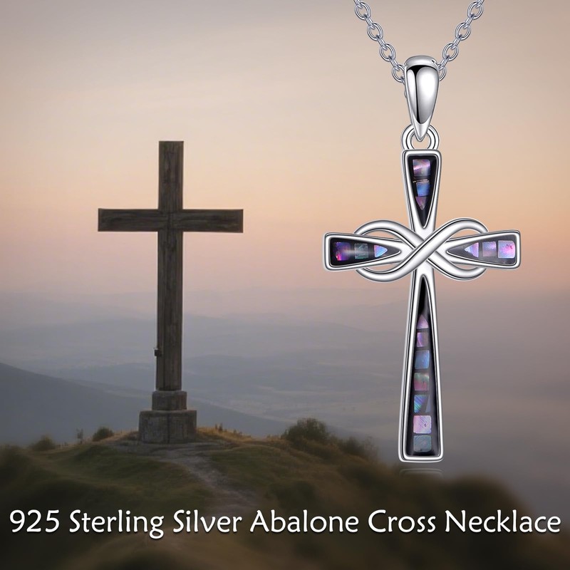 - Adorable Design:The 925 sterling silver infinity cross pendant necklace features an innovative design that combines an infinity symbol with a cross. The cross is beautifully adorned with intricately cut abalone shell pieces, symbolizing eternal faith and connection.